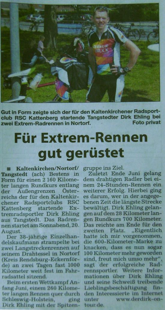 [Home] [Der Dirk] [Erfolge] [RAA 2010] [Tipps+Tricks] [Unterstützer] [Berichte] [News + Termine] [3.5. - news] [16.5. - BLOG] [16.5. - Rückblick] [19.5. Neuer Sponsor] [26.5. - bei noa4] [30.5. - Velothon] [7.6. - NordCup] [18.6. Bericht SZ] [27.6. 24h von Nortorf] [4.7. Mitternachtsmarathon] [23.7. Bericht NS Wochenblatt] [4.8. Bericht nord express] [Links] [Presse] [Bildergalerie]