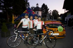 Auserwählt von ROADBIKE startete ich in einem gesponsorten Team des Radsportmagazins. Zusammen mit Rosi, ... erreichten wir nach 3 Tagen, 19 Stunden und 43 Minuten das Ziel. Und das ohne weitere Betreuung. ledigliche ein begleitfahrzeug - das wir selbst fuhren - stand uns zur Verfügung. Wir waren somit buchstäblich rund um die Uhr auf den Rädern. Einer fuhr Rad, einer das Auto, der Dritte sorgte für die Orientierung und nur einer hatte Pause. 3 Tage lang und 3 Nächte...